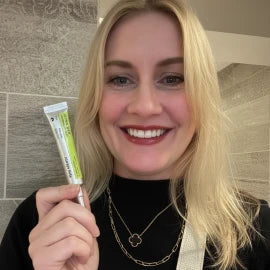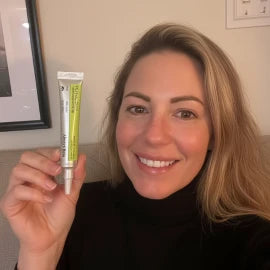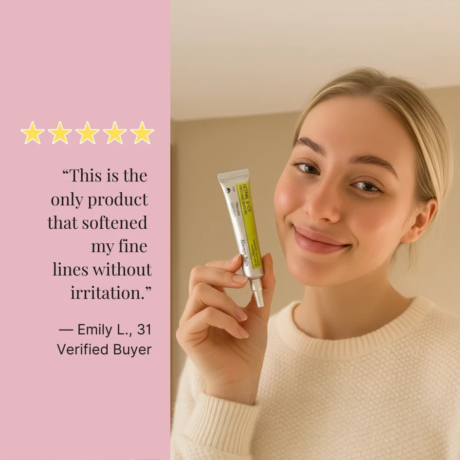 Use a rice-sized amount and gently dab onto target areas like under eyes, smile lines, and forehead.